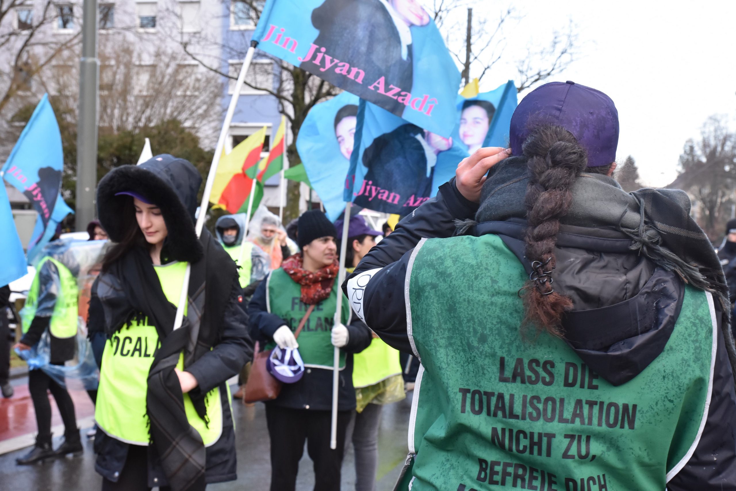 Di meşê de, provakasyona polîsên Elman ku dixwestin dîmenên ciwanên ku dirûşmeyên “Bê Serok Jiyan Nabe” û di derbarê Rêberê Gelan Abdullah Ocalan de diavêjin bikşînin, berdewam dikir lê ciwan bibîryar in ku heya dawiya çalakiyê çalakiyên xwe bidomînin. Bi teybetî jî coş û kelecana jinên ciwan bal dikişand û jinên ciwan ên ku ji ajansê me re axivîn jî dan zanîn ku heya tecrîda li ser Rêberê Gelan Abdullah Ocalan rabe û azadiya fizîkî yê Rêberê Gelan Abdullah Ocalan pêk were têkoşîna wan wê bidome.