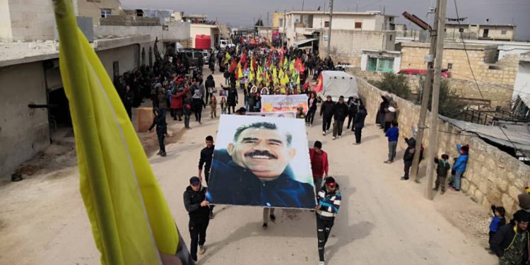 ŞEHBA – Ji ber salvegera 21’ê ya komploya navneteweyî ya 15’ê Sibatê ku li dijî Rêberê Gelan Abdullah Ocalan hate kirin, ciwanên herêma Efrîn û Şehbayê meşek li dar xistin.