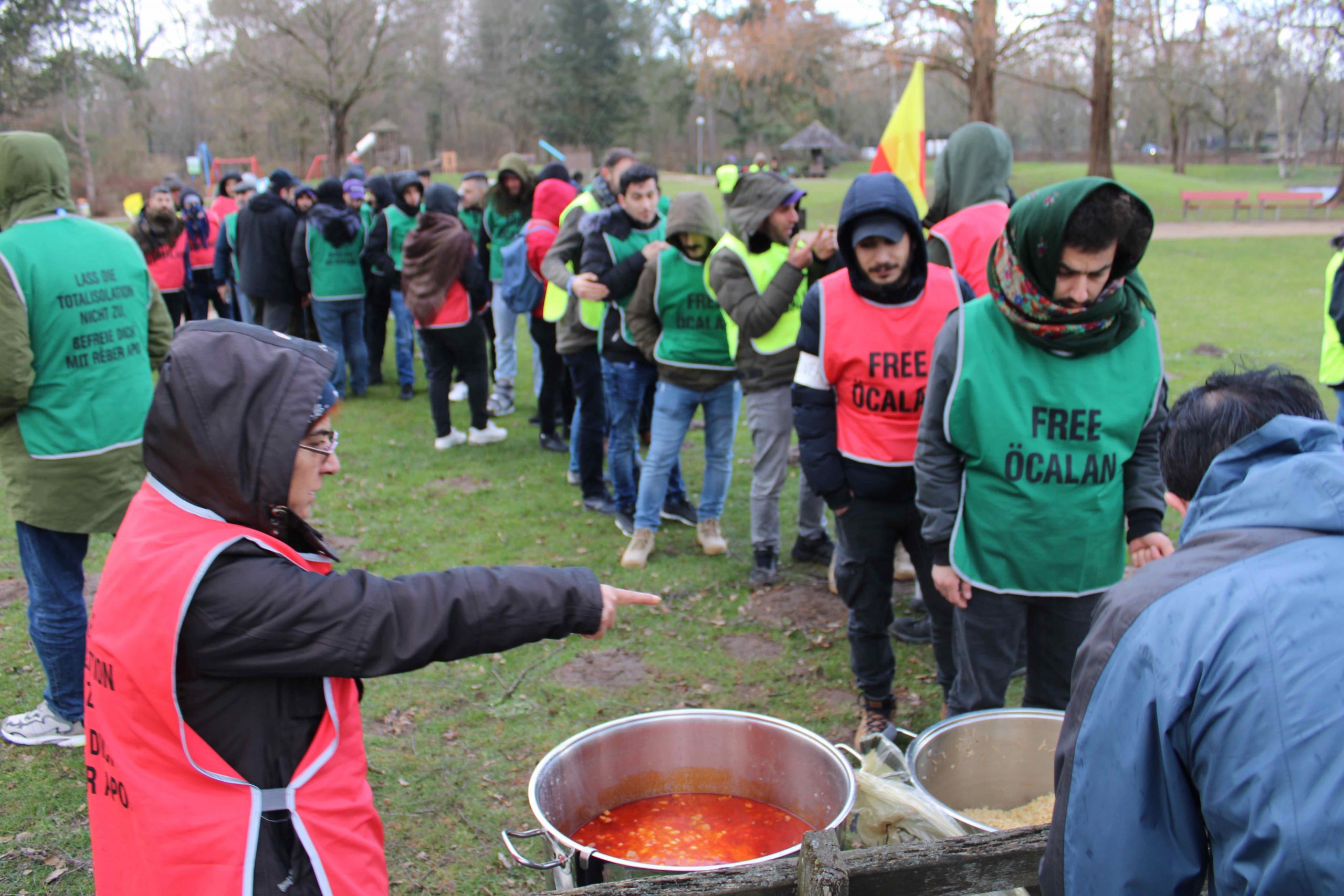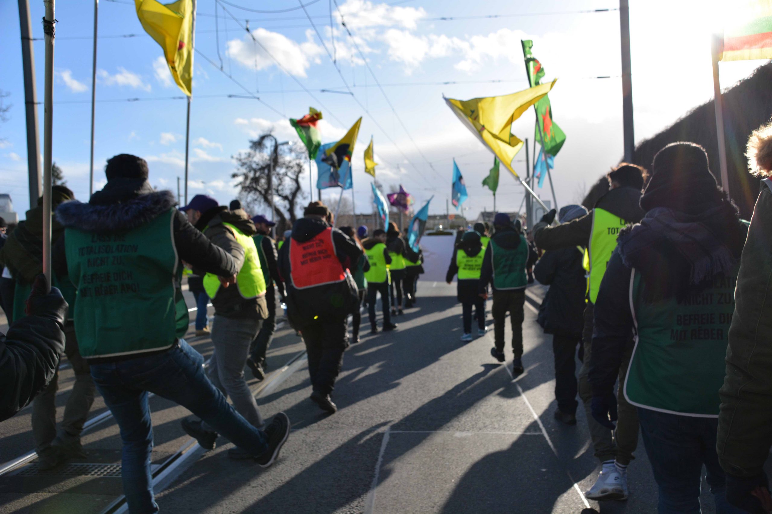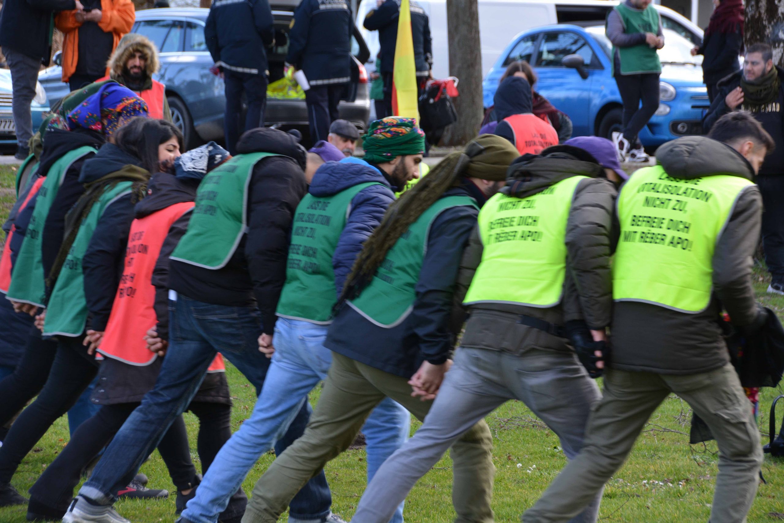 Ciwanên ku bi coş û bibiryariyeke mezin va dimeşiyan, îro dîsa rastî provakasyonên polîsên Elman va hatin. Polîsên ku carinan û bêsedem bi kamerayê dîmenên meşvanan digirt, dirûşma “Es Lebe Öcalan” (Bijî Ocalan) jî qedexe kir. Li gor daxuyaniya polîsan, dirûşmên navê serokê gelan Abdullah Ocalan derbas dibe tev qedexe kirîne. Vê gav tenê dirûşma ‘Bijî Rêber Apo’ neqede ye. Xêncî vê hemû dirûşmên di nav da navê serokê gelan Abdullah Ocalan derbas dibe tev qedexe kirîne.