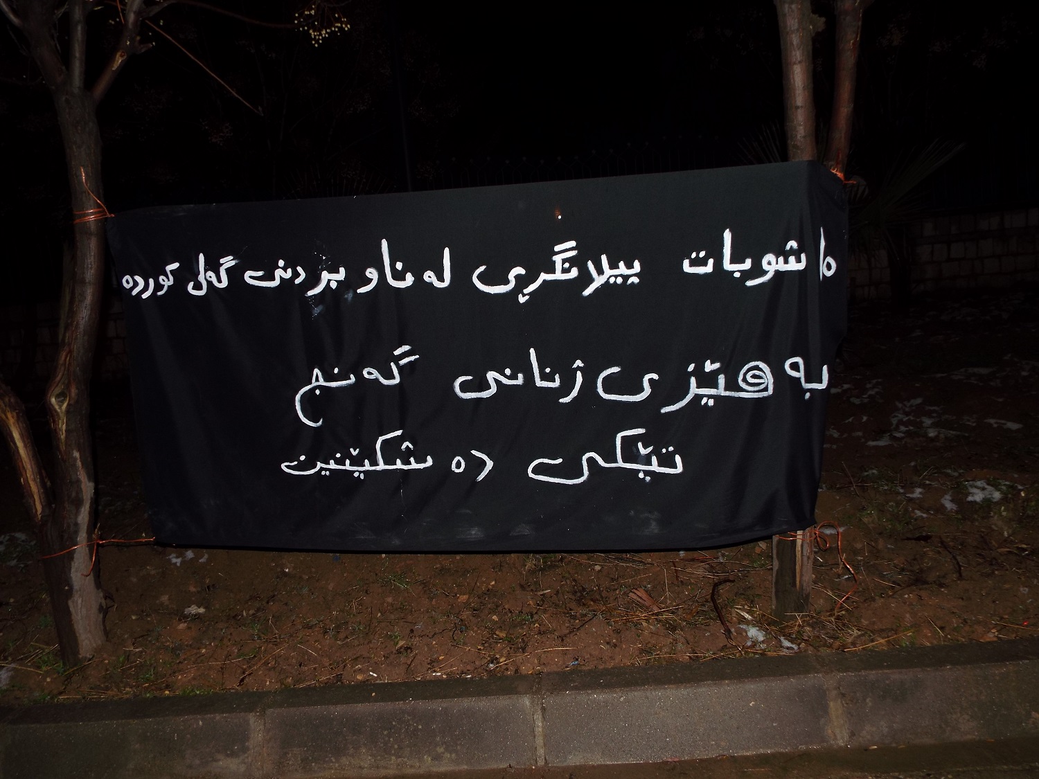 Gencanî Welatparêz û Jinanî Gencî Tekoşer, li seranserê bajarê Silêmanî paçên reş daliqandin. Ciwanan li ser paçan dirûşmeyên wek; ‘’Serî Hilde, Tecrîdê Bişkîne, Faşîzmê Birûxîne, Kurdistanê Azad Bike’, ’15 Sibat roja qirkirina Kurdan e, em ê bi ruhê jinên ciwan 15 Sibatê bişkînin’, ‘Bê Serok jiyan nabe’, ‘Bi ruhê yekîtiya netewî li hember komplo bisekine, ‘Ji bo Rêberê Gelan Ocalan Azadî’’ nivîsandin.