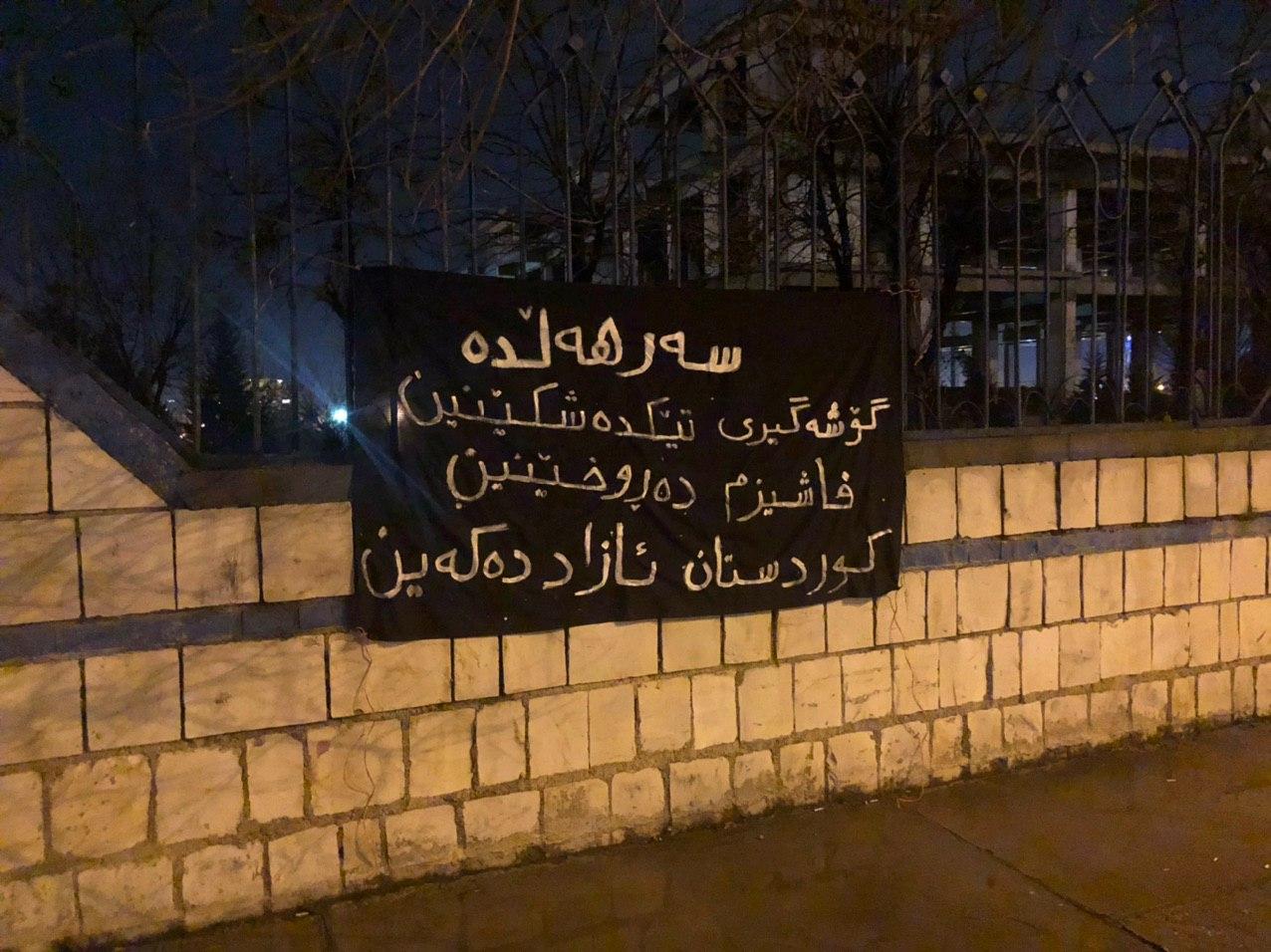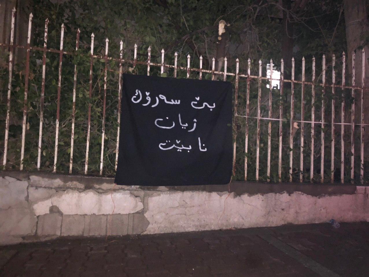 SILÊMANÎ – Gencanî Welatparêz û Jinanî Gencî Tekoşer ji boneya salvegera Komploya Navneteweyî ya 15’ê Sibatê li gelek dewerên Silêmanî paçên reş daliqandin.