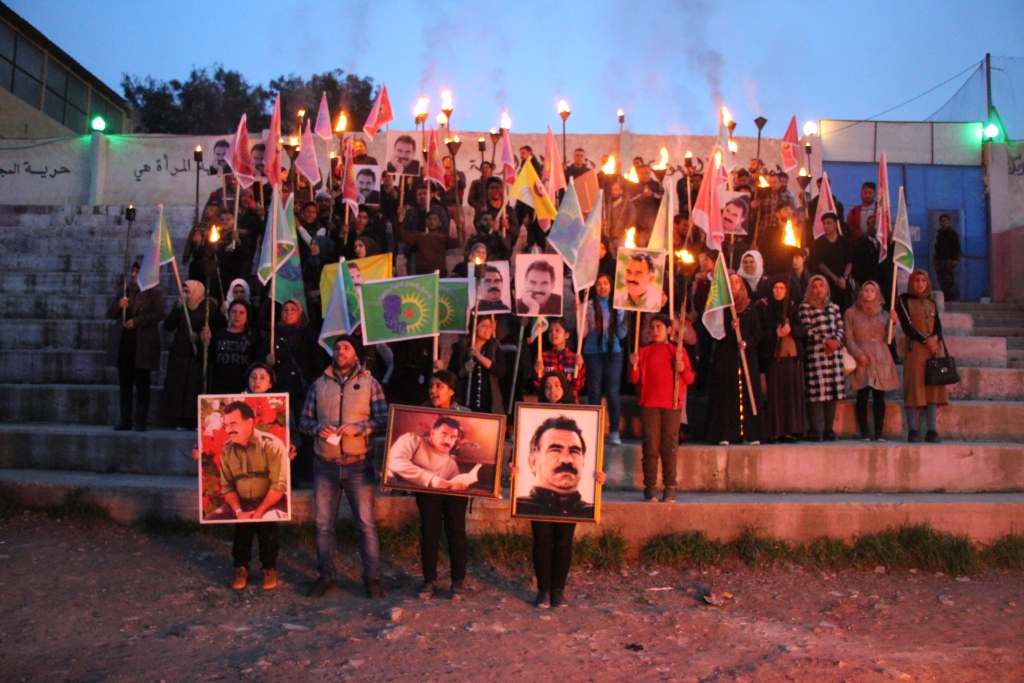 Piştî xwendina daxuyaniyê dirûşmeyên banga azadiya Ocalan hatin qîrkirin.