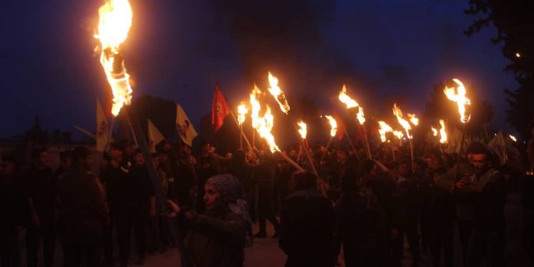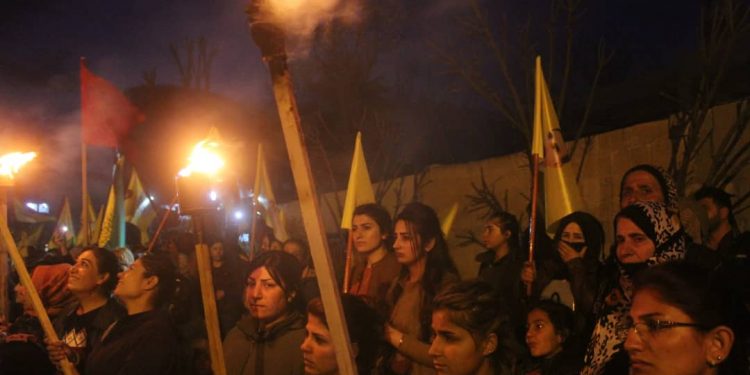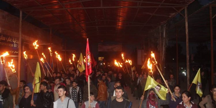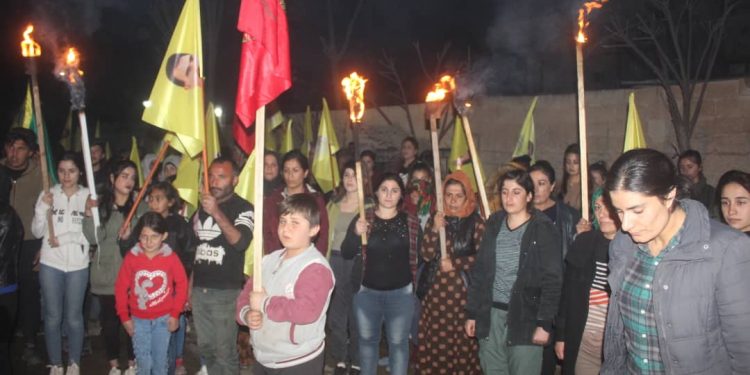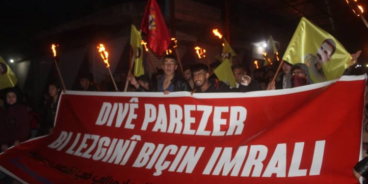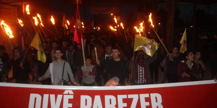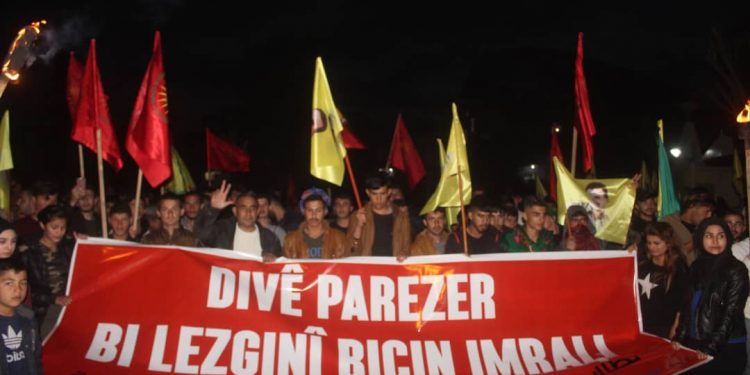 DİRBÊSİYÊ – Meş ji pêşiya navenda ciwanan destpê kir û li kolanên sereke yên navçeyê geriya. Ciwanan bê navber dirûşmeyên banga azadiya Ocalan û eşkerekirina rewşa wî ya tenduristiyê qîr kirin.