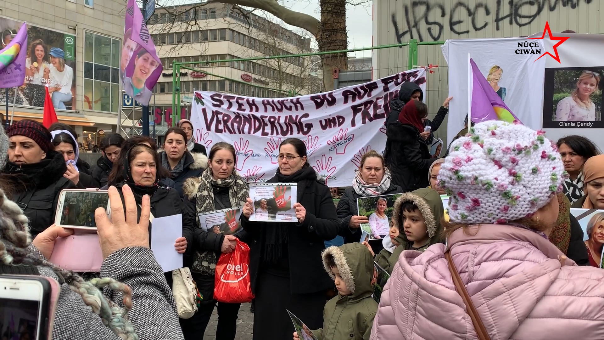 Bi vê mabestê îro, gelek rêxistin û tevgerên jinan ên Kurd û navneteweyî li Dortmundê kom bûn û bi endamên malbatê re li hemberî qetilkirina Olonia Çendy û hemû qetilkirinên jinan li cîhanê protesto hat lidarxistin.