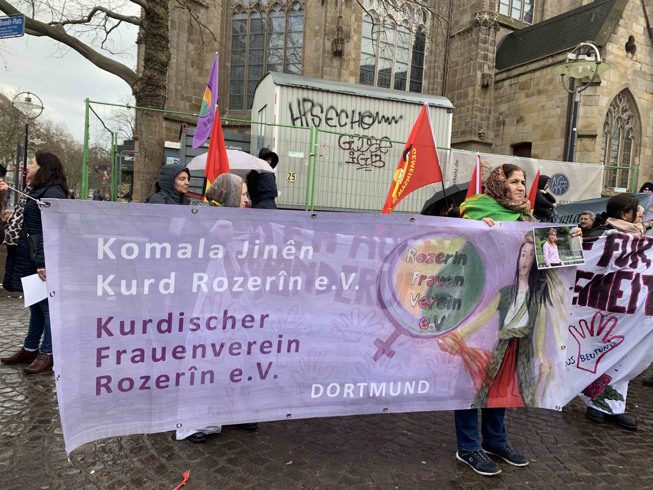 Bi bangawaziya hin rêxistinên jinê ku ji bo Olonia Çendy banga meşa protestoyê kiribûn, îro li Dortmundê di danê nîvro de çalakiyeke hate lidarxistin.