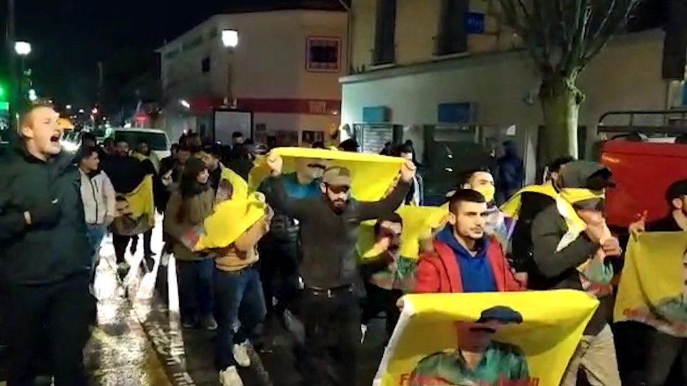 Ciwan danê êvarê saet di 19:30’î de li hev kom bûn û bi posterên Ocalan dest bi meşê kirin. Ciwanan di meşê de bi zimanên Kurdî û Fransî dirûşm qîriyan û fîşekên hewayî û dûyê reng bi reng bi kar anîn.