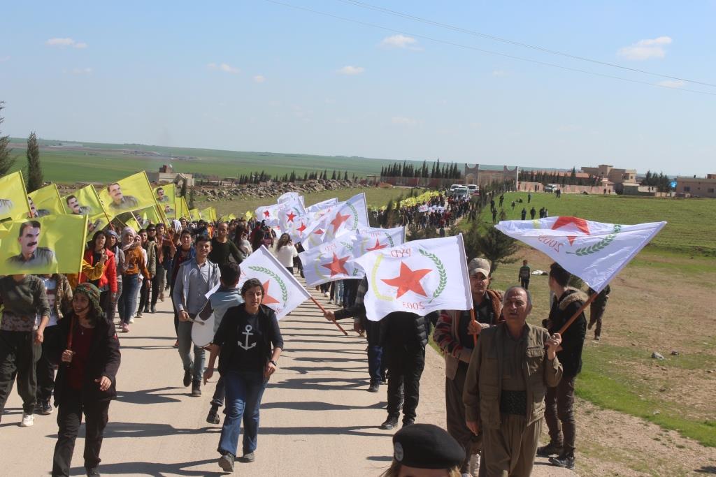 DIRBÊSIYÊ – Li herêma Cizîrê Ciwanên PYD’ê bi daxwaza ku parêzer Rêberê Gelan Abdullah Ocalan bibînin li navçeya Dirbêsiyê meşiyan. Di meşê de posterên Ocalan hatin hildan û bi dirûşmeyan hate gotin, “Ji Ocalan re azadî”.