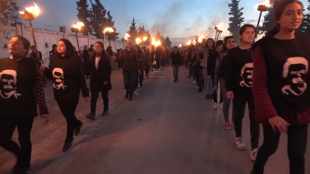 ŞEHBA – Endamên Yekîtiya Jinên Ciwan ji destpêka navçeya Fafîn heta Goristana Şehîdan a Fafînê meşiyan.