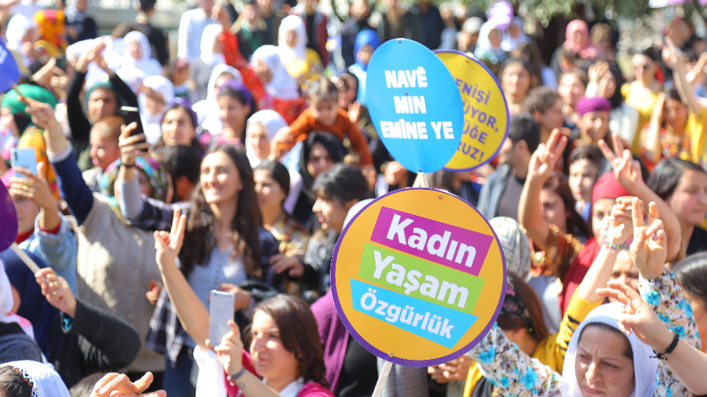 MÊRDÎN – Li navçeya Qoserê ya Mêrdînê Rêxistina Bajêr a Partiya Demokratîk a Gelan (HDP), Tevgera Jina Azad (TJA), Platforma Jinan a Şahmeran, bi çarçoweya 8’ê Adarê Roja Cinên Kedkar a Cîhanê şahiyek kirin. Li qada şahiyê ya Taxa Berçem pankarta bi nivîsa, ”Em rêxistiniya xwe dikin, ber bi azadiyê ve dimeşin” hate daleqandin. Parlamenterên HDP’ê Ebrû Gunay, Pero Dundar jî di nav de bi hezaran jin li mîtîngê hazir bûn. Jinan bi kincên xwe yên rengîn qada mîtîngê xemilandin.