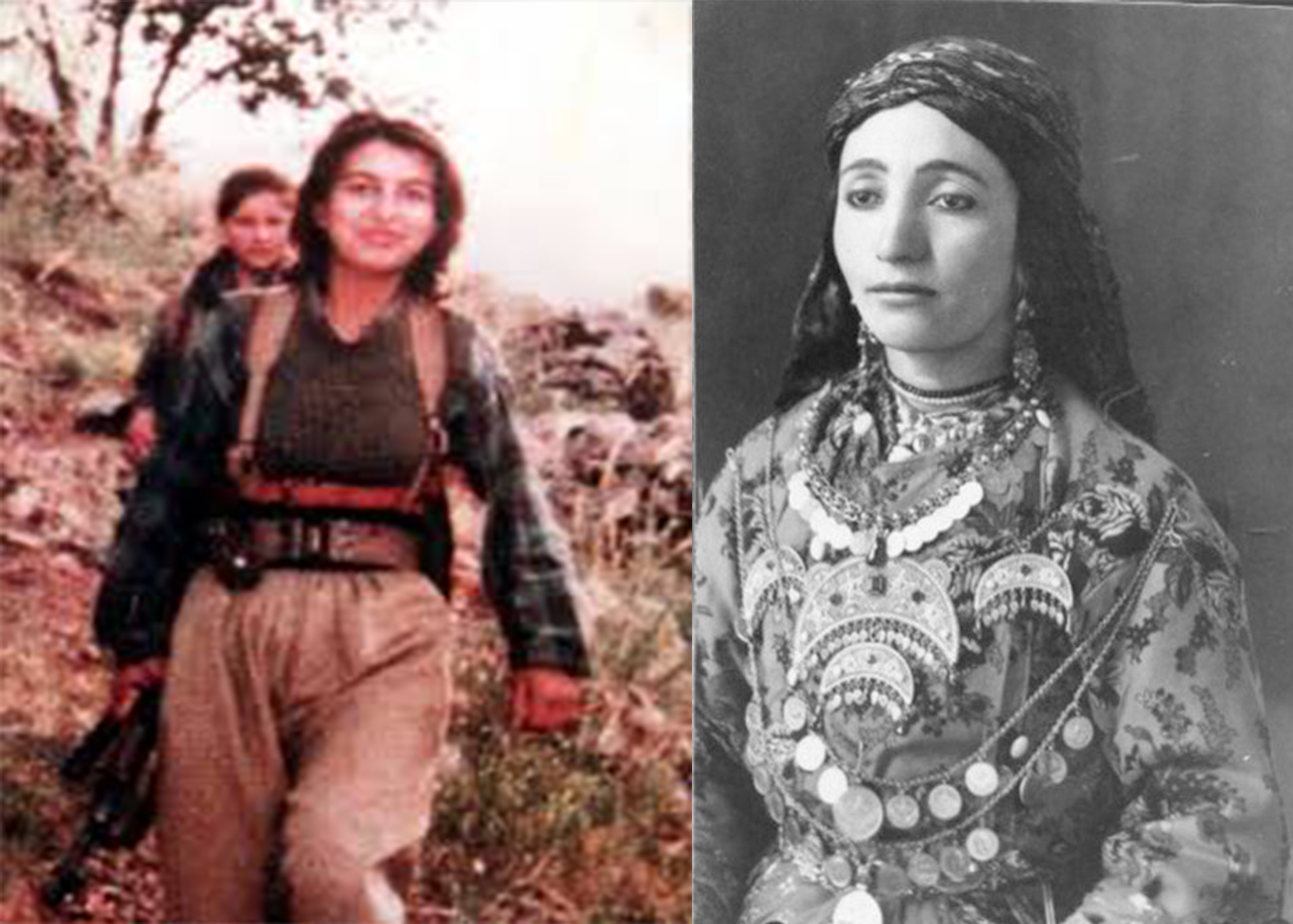 Di dîroka lehengî û pêşengiya jinên kurd de, di warê lehengiyê de Leyla Qasim û Rindexana Mala Eliyê Ûnis; di warê hunermendiyê de Meyremxan, Eyşeşan tê hişê mirov. Bo nimûne dema ku Leyla Qasim bê darizandin, gotina wê ya, “Ji ber ez canê xwe di riya Kurdistan de feda dikim kêfxweş û şanaz im…” di çanda lehengiya jina kurd de pêngaveke dîrokî ye. Ev rewş di efsane, kilam û meselokên Kurdan de xwe dide der. Her dem ciyek pîroz a jina kurd heye û bi lehengî, bi diyarkirina jiyanê û bi kedkariya xwe hebûna xwe nîşan dide. Di hunerê de jî digel ol û feodalîzma wê demê jinên hunermend ên wekî Meryemxan, Eyşe Şan, Belga Qado, Zadîna Şakir, Sûsika Simo, Fatma Îsa, Eslîka Qadir qîrîna xwe ya jina azad bi kilamên xwe berz kirine û ev çand bi Şehîd Mizgîn û Şehît Delîla berdewam kiriye.