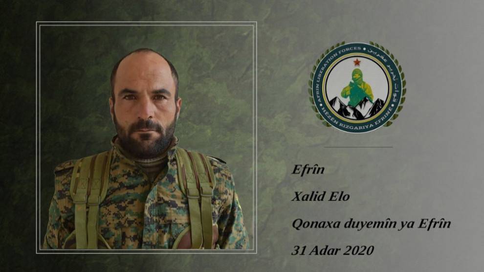 EFRÎN – Hêzên Rizgariya Efrînê (HRE) bi daxuyaniyeke nivîskî nasnameya şervanê xwe Efrîn (Xalid Elo) ku duh şehîd bûye, eşkere kir.