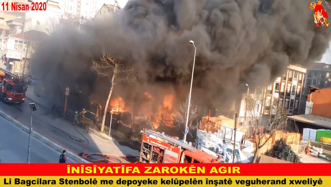 Di dîroka 11.04.2020’an de li Bagcilara Stenbolê, li taxa Yavûz Selîm me kargeheke kelûpelên înşatê veguherand xweliyê. Dûyê ku asîman kire mîna qetranê, derdorên faşîst nava jehriya dûmanê de hiştiye û şewata girseyî zirareke mezin a madî daye hevkarên rêvebiriya dîktator.