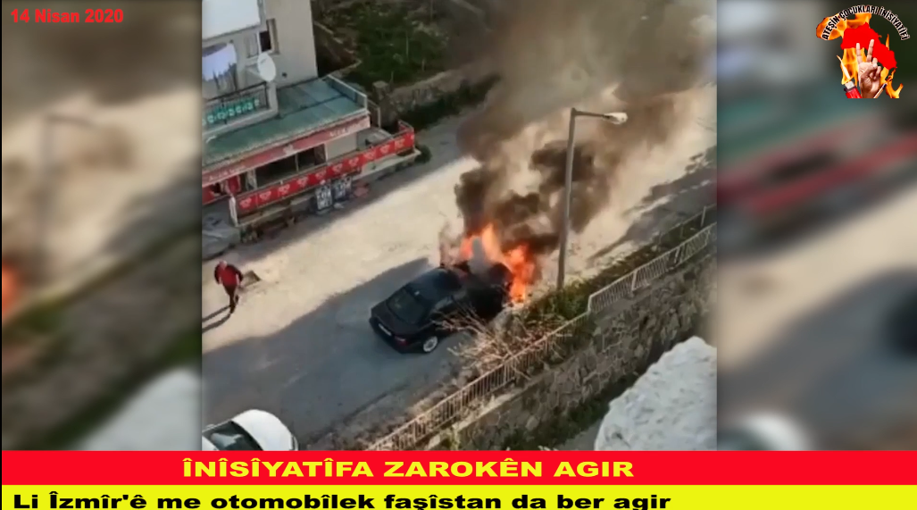 “Di dîroka 14.04.2020’an de li Îzmîr’ê, me otomobîlek faşîstan da ber agir. Di encama şewatê de otomobîla ku veguherî xûrdeyê nema dikare were bikar anîn”.