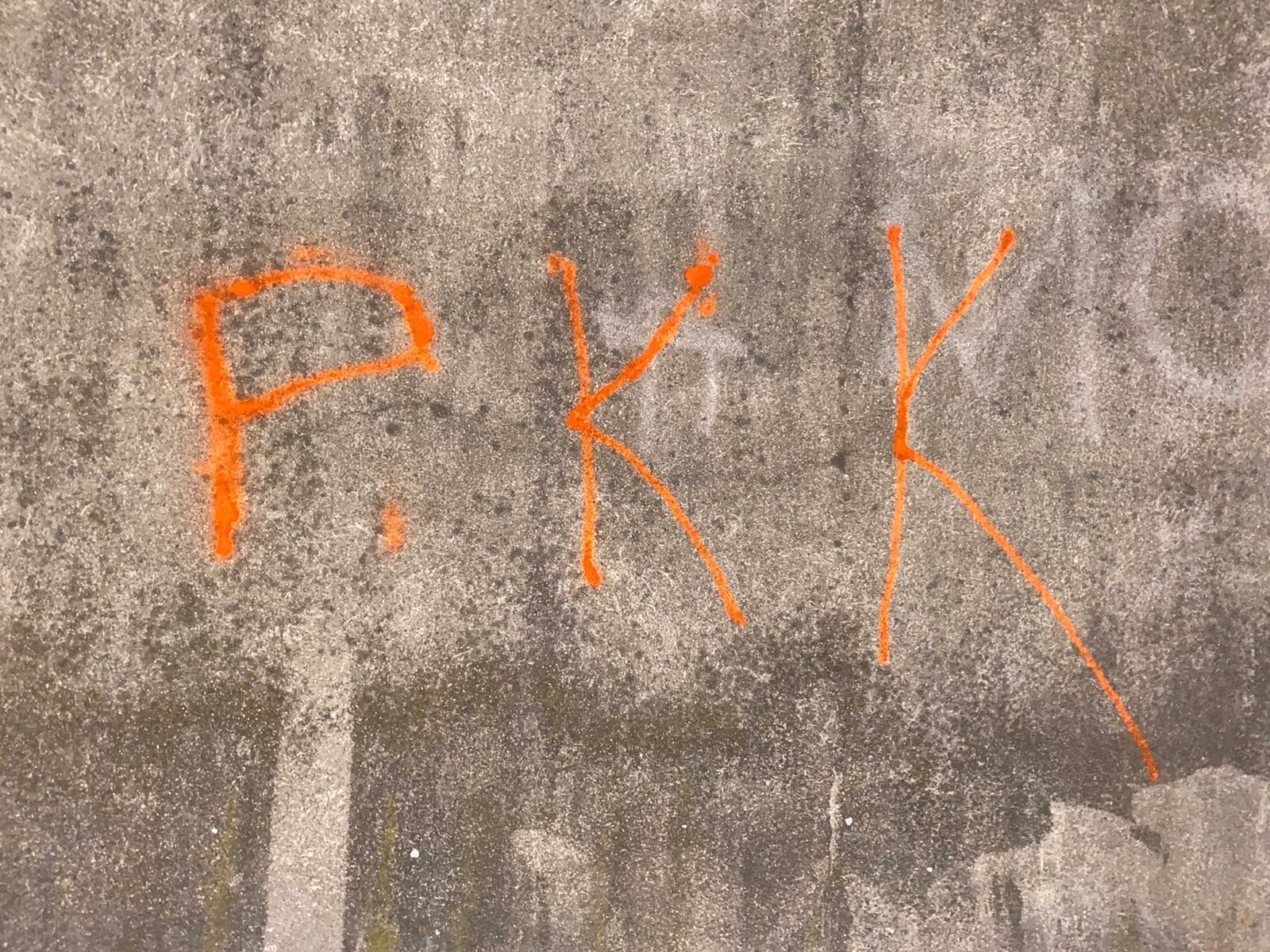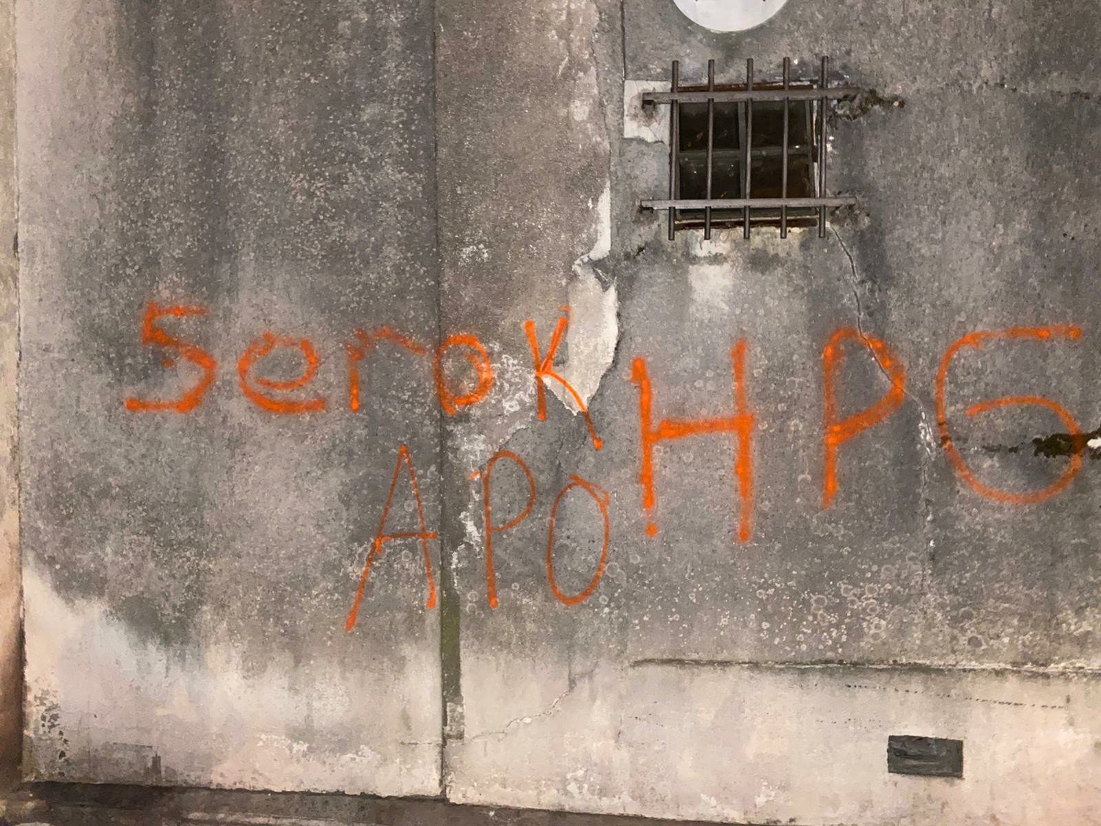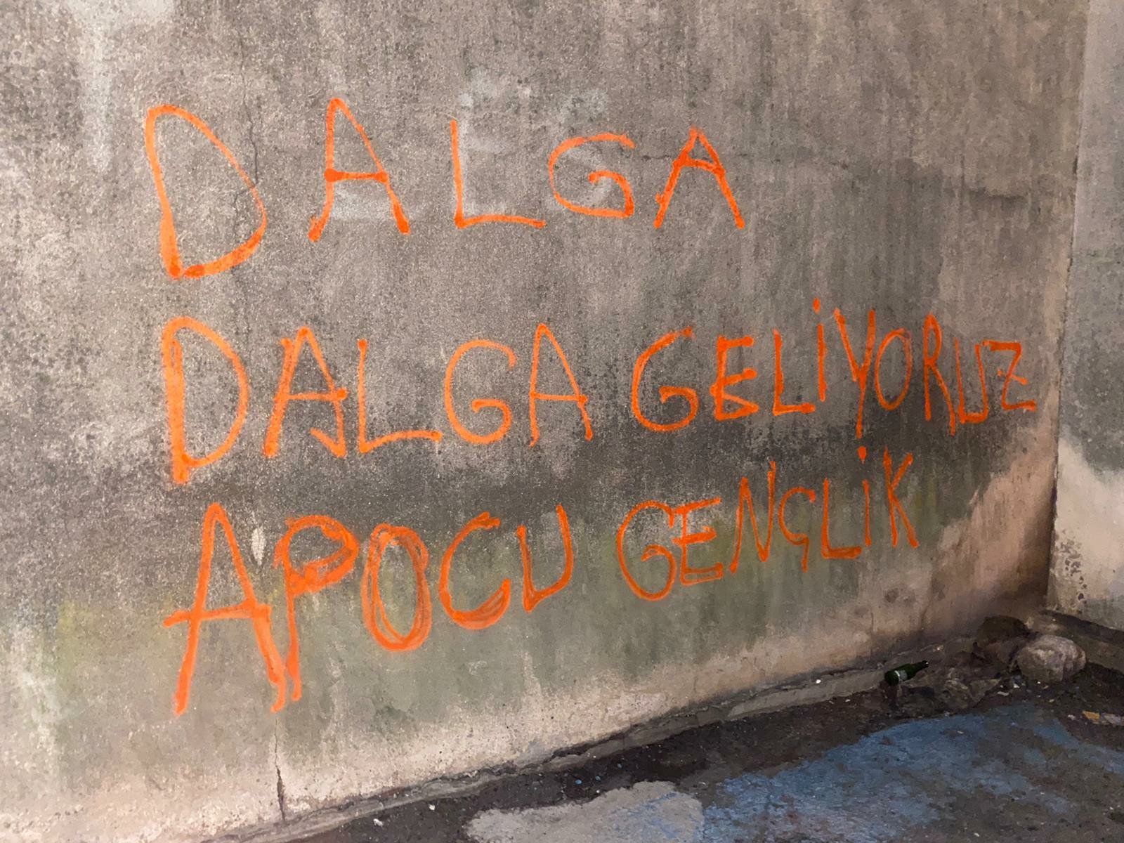 Piştî ku ciwanên ji vir veqetiyan, li ser dîwarên li navendê, nivîsên “Em pêl bi pêl tên”, “Bijî Serok Apo” û “PKK” nivîsîn.