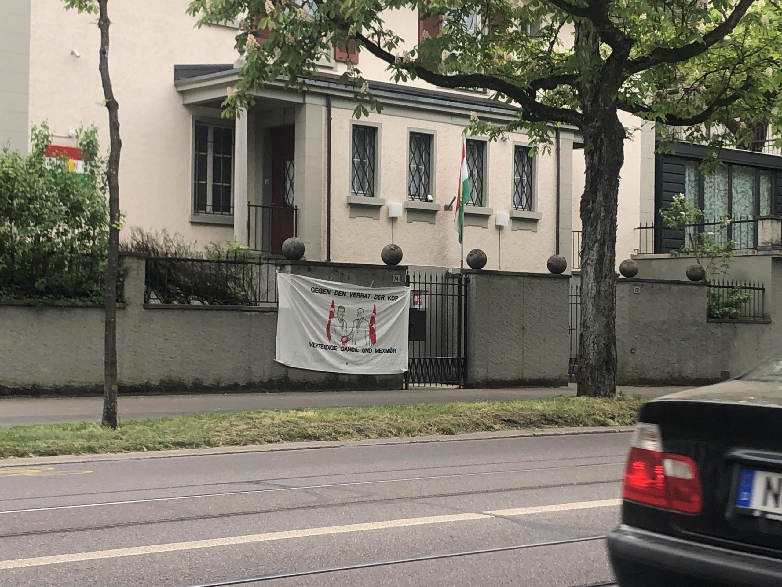 Çalakiya ku di guncana pêngava Nehêleyê bi şiyara “Dagirkeriyê Nehêle” ve hate kirin de, li ser dîwarên nûnertiya PDKê panqarta bi Elmanî “Li hemberî xiyaneta PDKê Maxmûr û Qendîlê Biparêze” dinivîse, hate daliqandin. Ji çalakiya ku di seat 15an de hate kirin re ciwanên Swîsreyî yên Antîfaşîst jî piştgirî dan.
