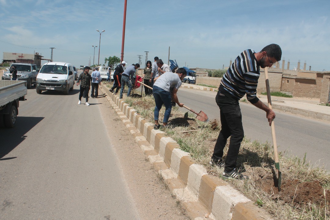 QAMİŞLO – Ciwanên PYD`ê bi hevkariya Meclisa Giştî ya Partiya Yekitiya Demokratîk (PYD) bi armanca guhdana bi jîngehê 200 dar li naverasta rêya giştî ya nêzî têketina rojavayê bajarê Qamişlo çandin.