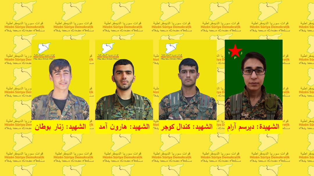 NAVENDA NÛÇEYAN – Navenda Ragihandin û Çepemeniyê ya QSD’ê bi daxuyaniyeke nivîskî nasanameya 4 şervanên ku di berxwedana li gundên Eyn Îsa ya li dijî dewleta Tirk a dagirker û çeteyên wê de şehîd bûbûn, eşkere kirin.