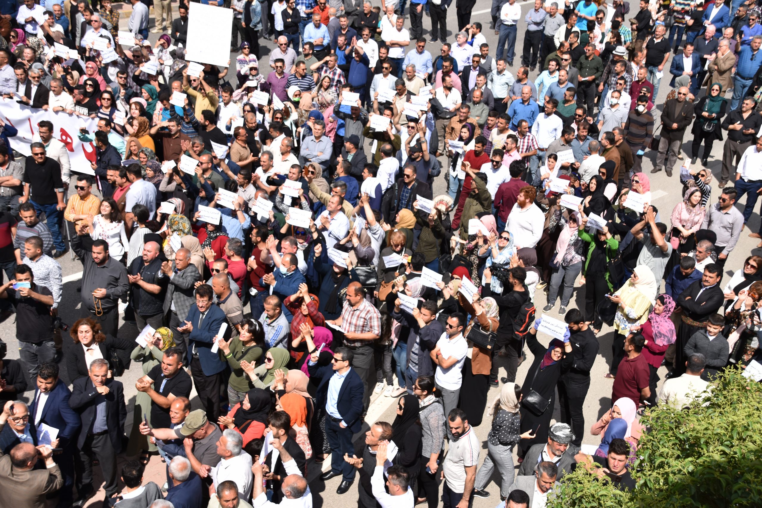 Di xwepêşandanê de dirûşmeyên weke, ‘Birûxe desthilat’, ‘Ev desthilata têkçûyî her nefret hêjayiye’ berz kirin. Herwiha astengdar li pêşiya xwepêşandanê bûn.