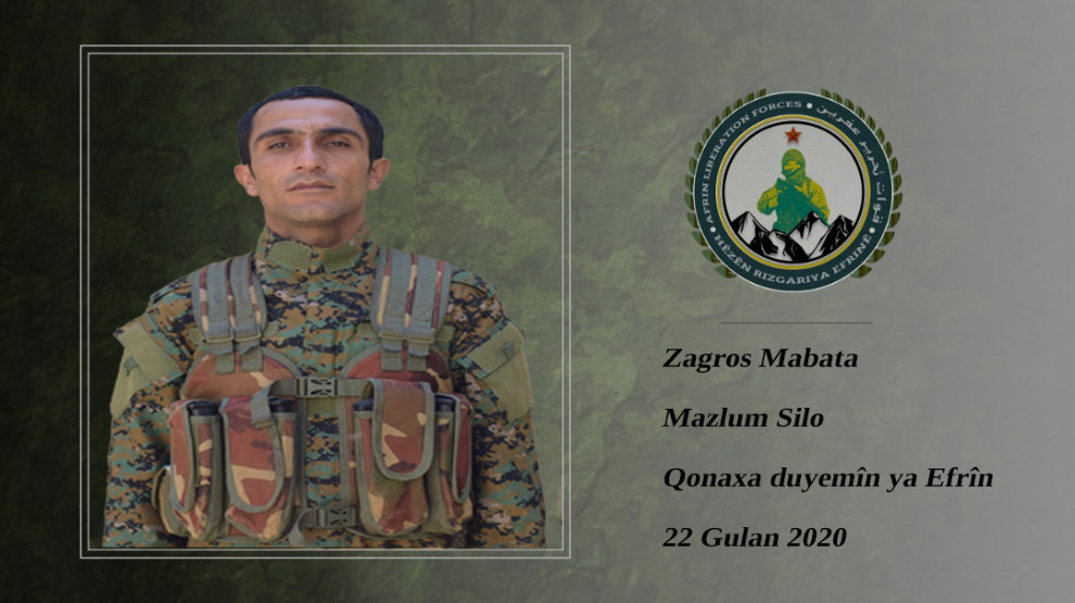 “Roja 22’ê Gulanê şervanê me Zagros Mabata, di qonaxa duyemîn a Berxwedana Efrînê de gihîşt asta şehadetê.