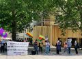 Êrîşên ser Civakê Jinên Rosa protesto kirin. Bi zimanê Elmanî panqartên ‘Hemberê tevgerê jin êrîşa bisekinînin’ û ‘Hemû girtiyên siyasî re azadî!’ vekirin.