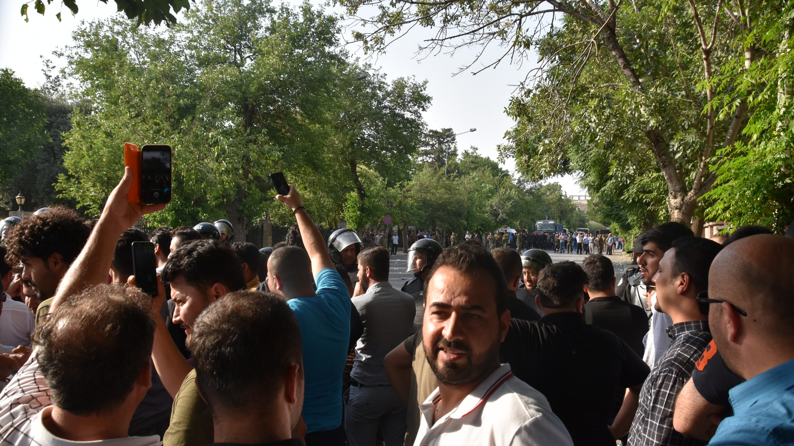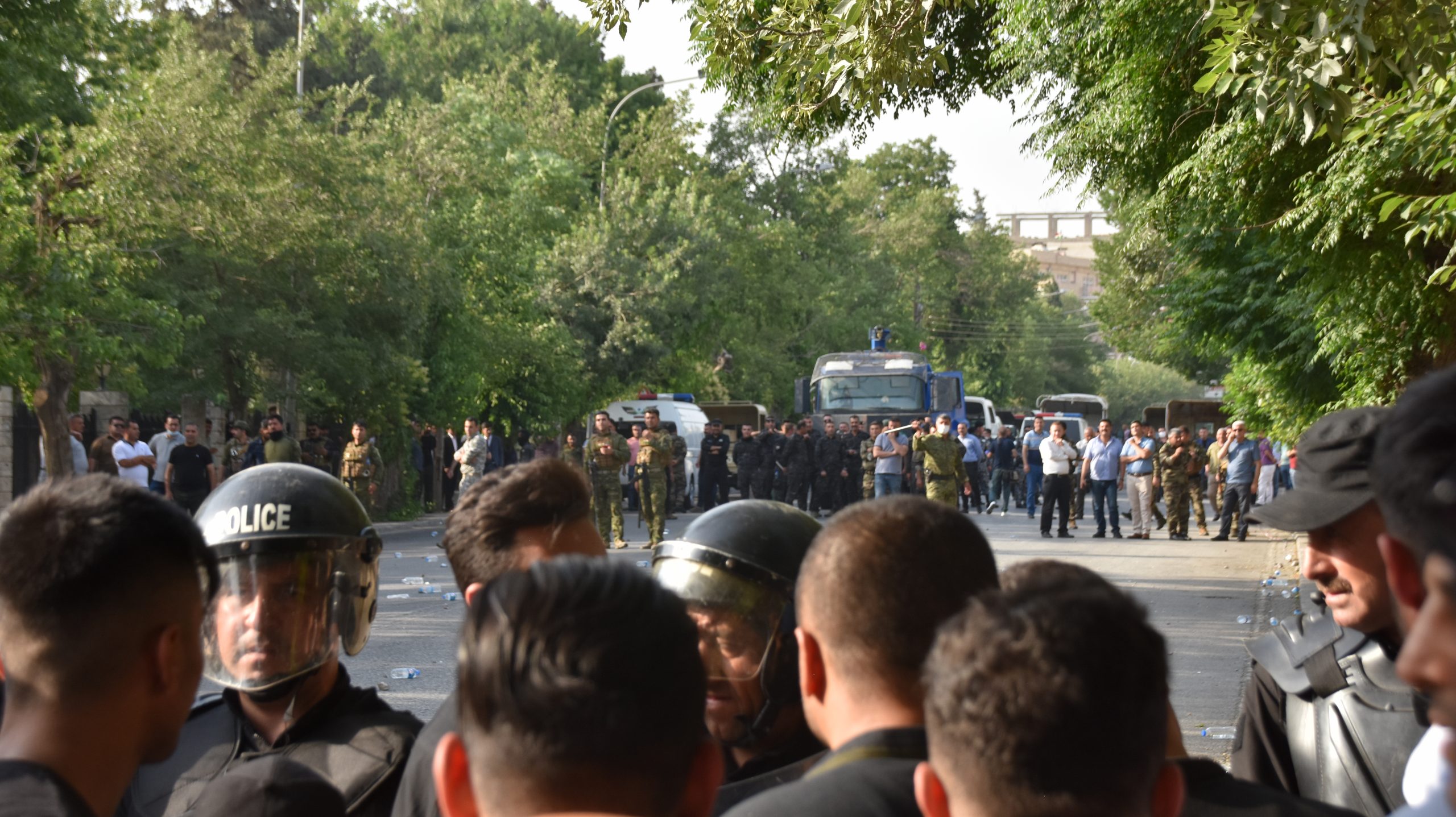 Ji beriya çend kêliyan jî hêzên asayîşê bi bombeyên gazê û cobên elektrîklî êriş birin ser xwepêşanderan. Gelek xwepêşander hatin binçavkirin.