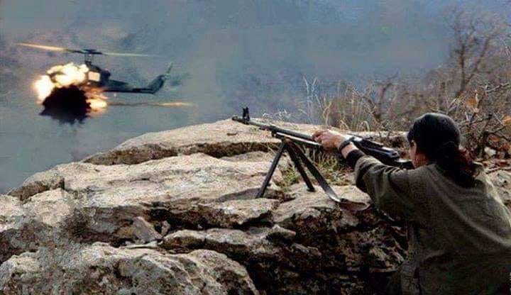 Di heman rojê de saet di navbera 20.00 û 21.00’an de balefirên şer ên artêşa Tirk a dagirker û helîkopteran li qada Xantûrê dane. Hêzên me li helîkopterên qadê dane û derb li helîkopterekê dane. Dîsa saet di navbera 20.00 û 00.00’an de helîkopteran hewl dane qadê bomberdûman bikin, ev helîkopter jî bûne hedefa hêzên me. Li vê derê jî hêzên me derb li helîkopterekê dane. Hêzên dagirker ên ku derb xwarine, neçar mane ku ji qadê vekişin.”