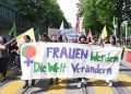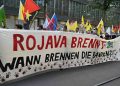 Hetanî ku meş bi dawî bû belavokên bi Elmanî ji aliyê aktîvîstên Defend Rojava Women ve li derdorê hate belavkirin. Meşa ku bi stran û marşên şoreşgerî berdewam kirî ser hev ji bo Azadiya Rêberê Gelan û dirûşmên ji bo bidawîanîna dagirkerî û êrîşên qetîamê yên li Kurdistayê hatin berzkirin.