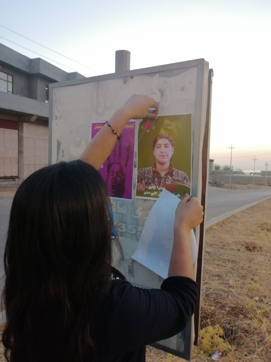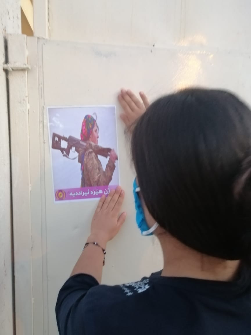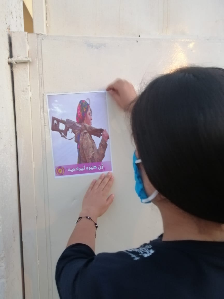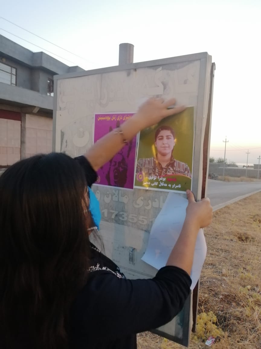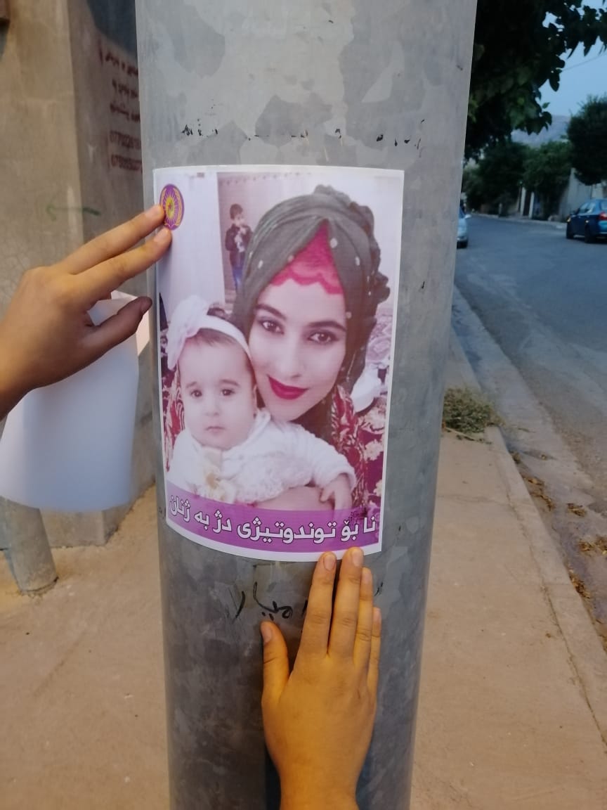 SİLÊMANÎ – Jinên Ciwan yên Têkoşer li Navçeya Seyd Sadiq ya Bajarê Silêmanî li dijî şideta ser jinê li her deverê navçê pankart daleqandin.