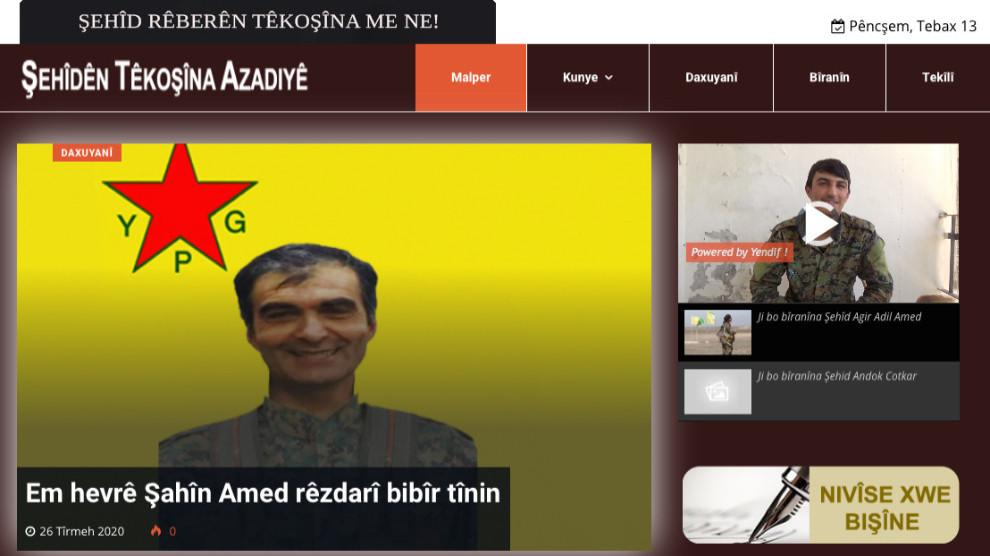 Di malperê de wê wêne, dîmen, daxuyanî, gotar û nivîs li ser şehîdan bên weşandin. Di destpêka malperê de gotina “Şehîd pêşengên têkoşîna me ne” hate nivîsandin.