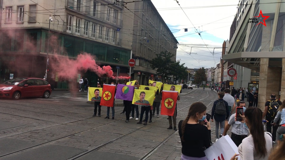 Ciwan li navenda bajêr li hev civiyan û li ser rêya tramwayê çalakî li dar xistin. Ciwanan li ser rê posterê Rêberê Gelê Kurd Abdullah Ocalan û alaya PKK’ê hildan. Ciwanan bi Fransî sloganên ‘Azadî ji Ocalan re’, ‘Bimire rejîma Tirk a faşîst’ û ‘Bi hev re serhildan berz kirin’