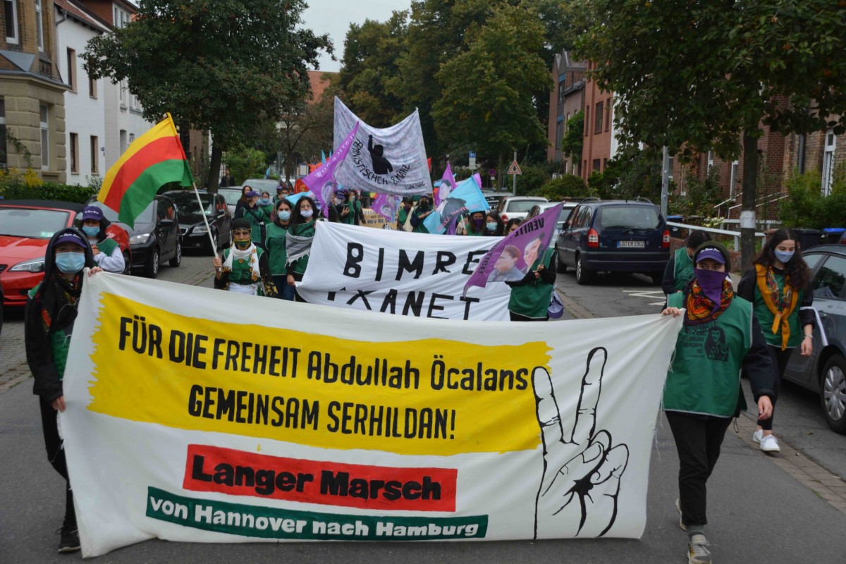 Bi şîara ‘Ji bo azadiya Rêber Apo serhildan’ di 5’ê Îlonê de li bajarê Hannoverê yê Elmanyayê dest pê kiribû. Meş di roja 5’an de didome.