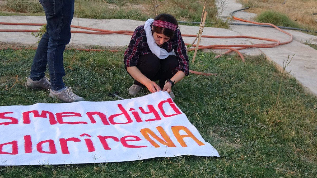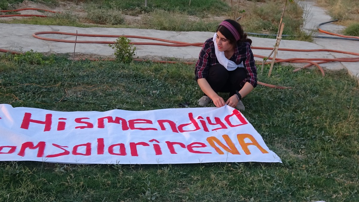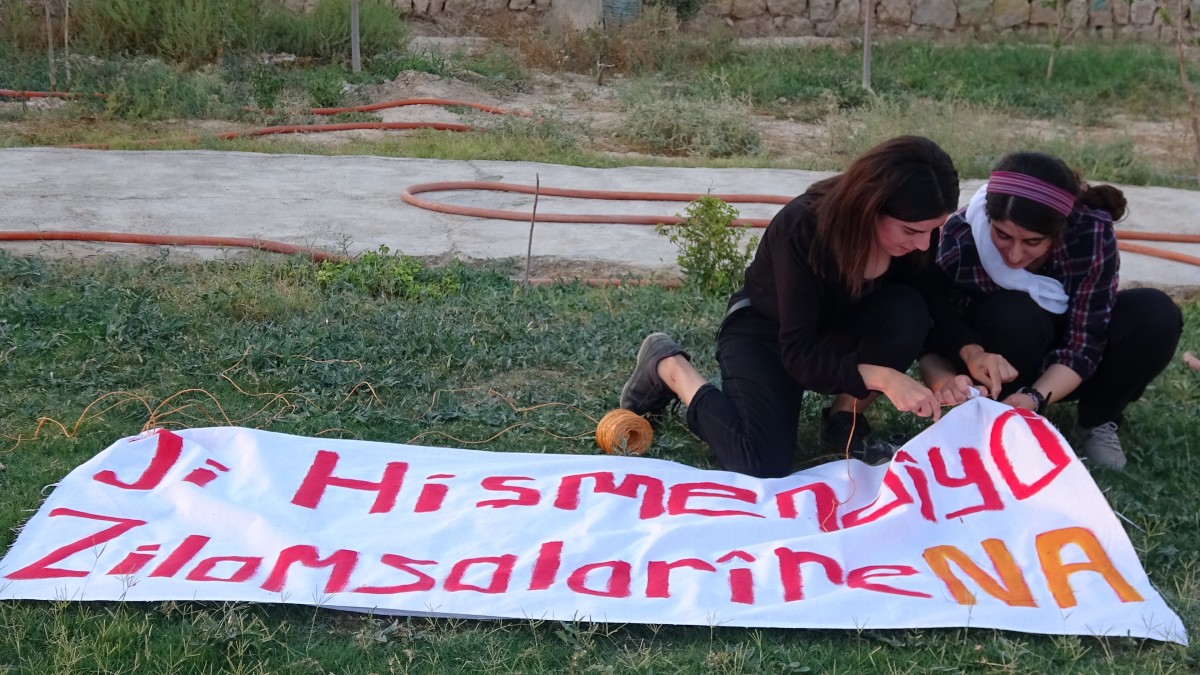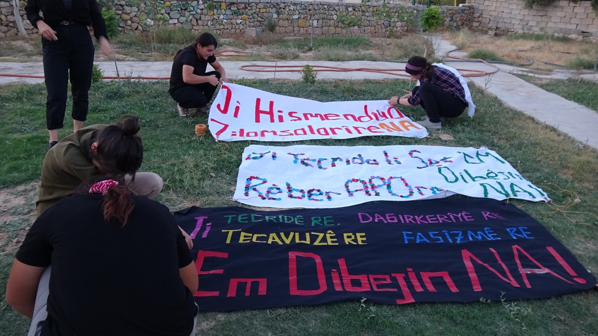 MEXMÛR – Li dijî tundiya ser Jinan Tevgera Jinên Ciwan ên Mexmûrê di çarçoveya Kampanya “EM DIBÊJIN NA” de pankartên ku li ser nivîsên “Ji tecrîda li ser Rêber Apo re. Em dibêjin Na” “Ji Hişmendiya Zilamsalarî re NA” hatibûn nivîsandin, li kolanên Mexmûrê daleqandin.