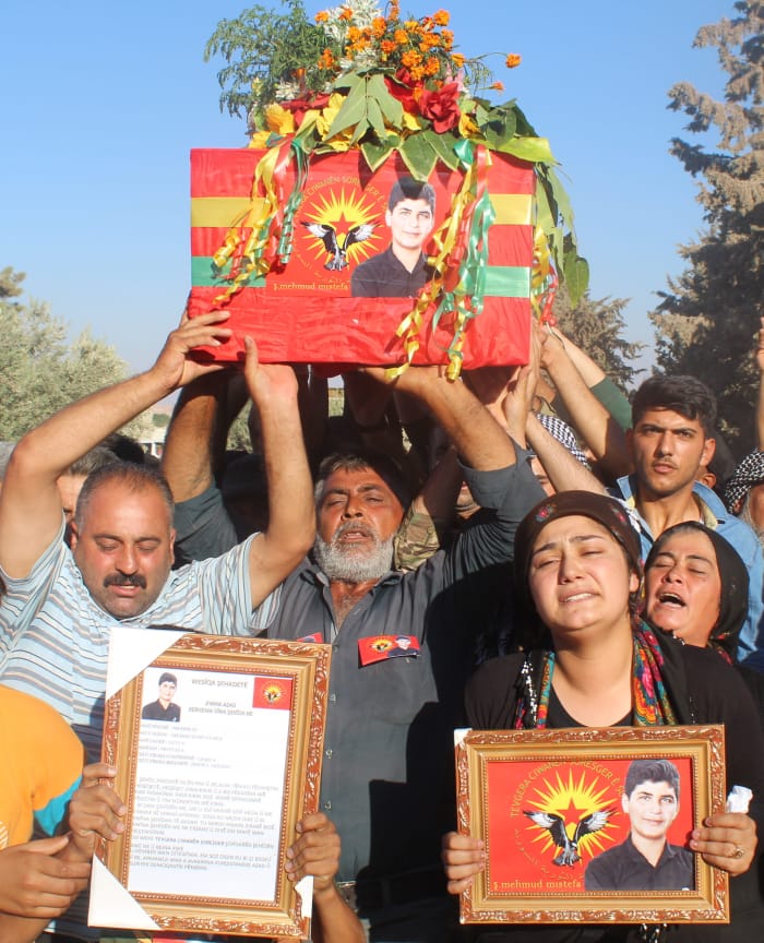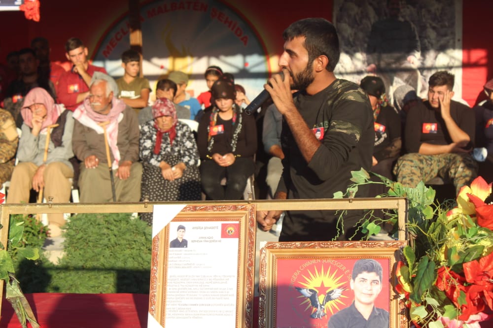 ŞEHBA – Bi sedan şêniyên Efrîn û Şehbayê cenazeyê endamê Tevgera Ciwanên Şoreşger a Sûriyê ya kantona Efrînê  Mehmûd Mistefa yê ku 14’ê Îlonê şehîd bibû spartin axê.