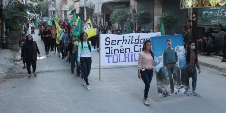 Endama Yekîtiya Jinên Ciwan Hemrîn Qasim axivî û got: “Dewleta Tirk a dagirker hewl dide gelê Kurd qir bike, nasname û çanda wê qir bike. Lê jinên azad li hemberî êrîşên artêşa Tirk a dagirker sekinîn.”