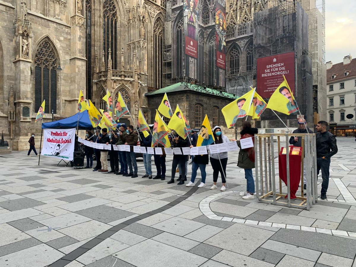 Di standa agahdarkirinê ya di çarçoveya pêngava ‘Bi hev re serhildan’ a saet 18:00’an li Stephansplatzê hate vendan posterên Rêberê Gelan Abdullah Ocalan û pankarta bi nivîsa ‘Ji Abdullah Ocalan re azadî’ hate hildan.