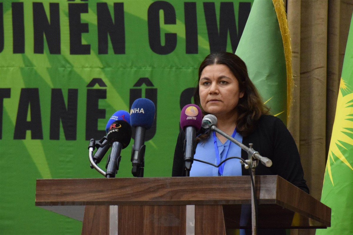 RIMÊLAN – Endama Serokatiya Partiya Yekitiya Demokratîk (PYD) Foza Yusif li 4`emîn Kongreya Yekitiya Jinên Ciwan de ku vê sibehê li Rimêlanê dest pê kiriye, axivî.