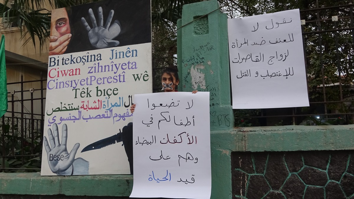 Di çalakiyê de Pankartê bi nivîsa “Bi Tekoşîna Jinên Ciwan Zihniyeta Cinsiyetperestî wê Têk biçe” hatibû hildan.