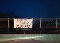 Ciwanan her wiha êvarê jî pankartek daliqandin. Ciwanan piştî meşê pankarta “Lîberte poûr Ocalan” (Azadî ji Ocalan re” li kêleka rê daliqandin.