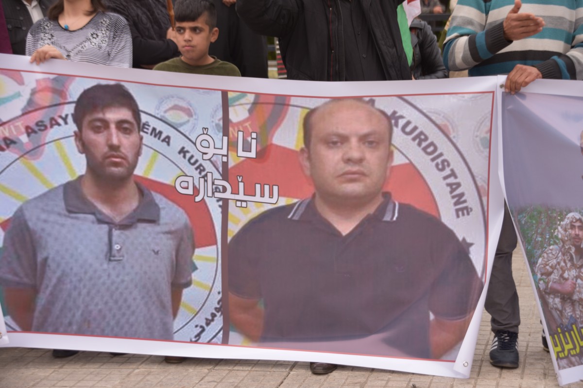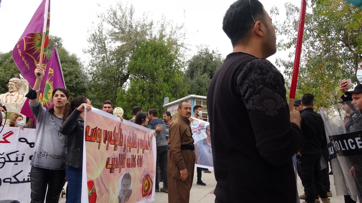 SILÊMANÎ – Ciwanên Welatparêz û Jinên Ciwan ên Têkoşer li Silêmaniyê li dijî dijminahî û siyaseta şerxwaz a PDK’ê û binçavkirina welatiyên kampa Mexmûrê çalakiyek nerazîbûnê lidarxistin. Ciwanan xwestin çalakiya xwe bi kon vedanê bikin, lê ji aliyê asayîşa YNK’ê ve destûr nehat dayîn.