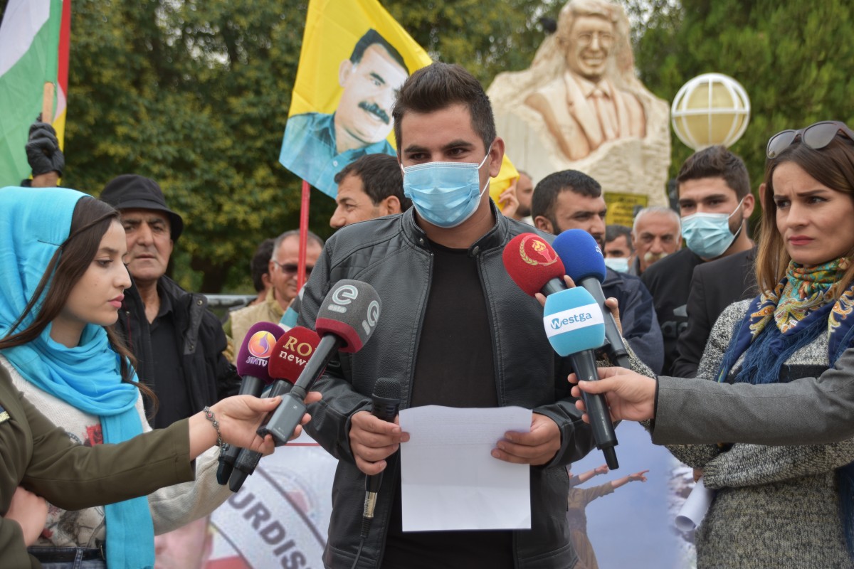 Piştî astengiyê ciwanan daxuyaniyek dan çapemeniyê. Daxuyanî ji aliyê Endamê Komela Ciwanên Welatparêz Daban Mihemed ve hate xwendin. Di daxuyaniyê de hate gotin; “Dewleta Tirk vê carê dixwaze bi rêya PDK’ê gelê Kurd bi destê Kurd tine bike. Komkujiyan li gelê Êzidî bike, PDK xizmeta dewleta Tirk dike, pêşmerge û wezaretan ji bo berjewendiyên xwe yên hizbî bikartîne. Ambargo xistiye ser Kampa Mexmûrê û ciwanên kampê digre.”