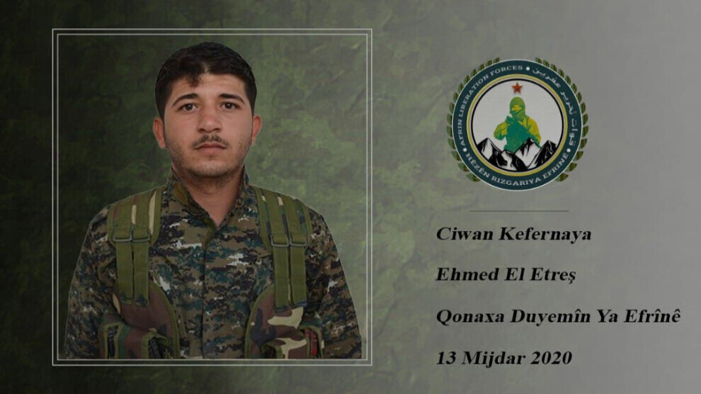 NAVENDA NÛÇEYAN – Hêzên Rizgariya Efrînê (HRE) têkildarî mijarê daxuyaniyeke nivîskî weşand. HRE’yê ragihand ku di 13’ê Mijdarê de şervanê wan Ciwan Kefernaya, di qonaxa duyemîn a Berxwedana Efrînê de, di encama êrişên çeteyên dewleta Tirk a dagirker de gihîşt şehadetê.