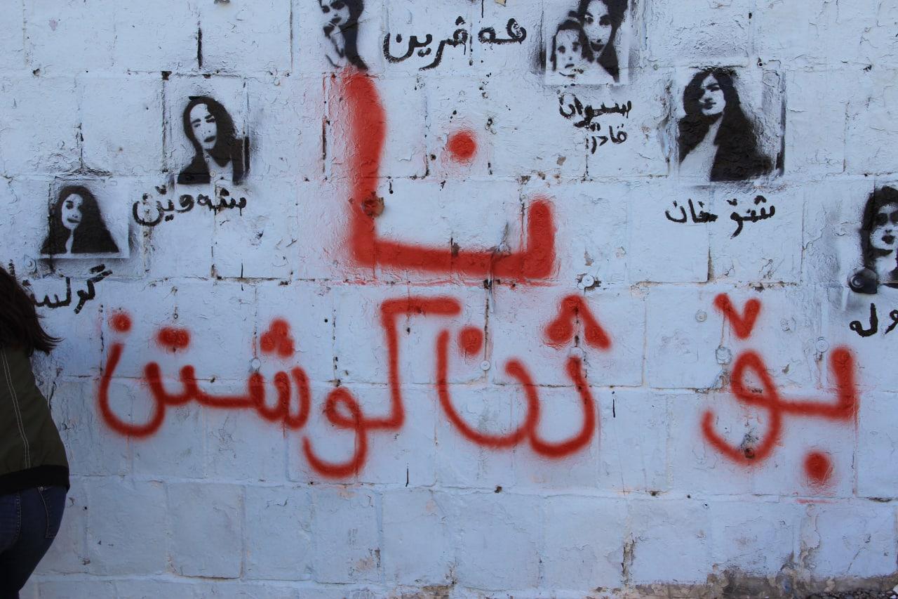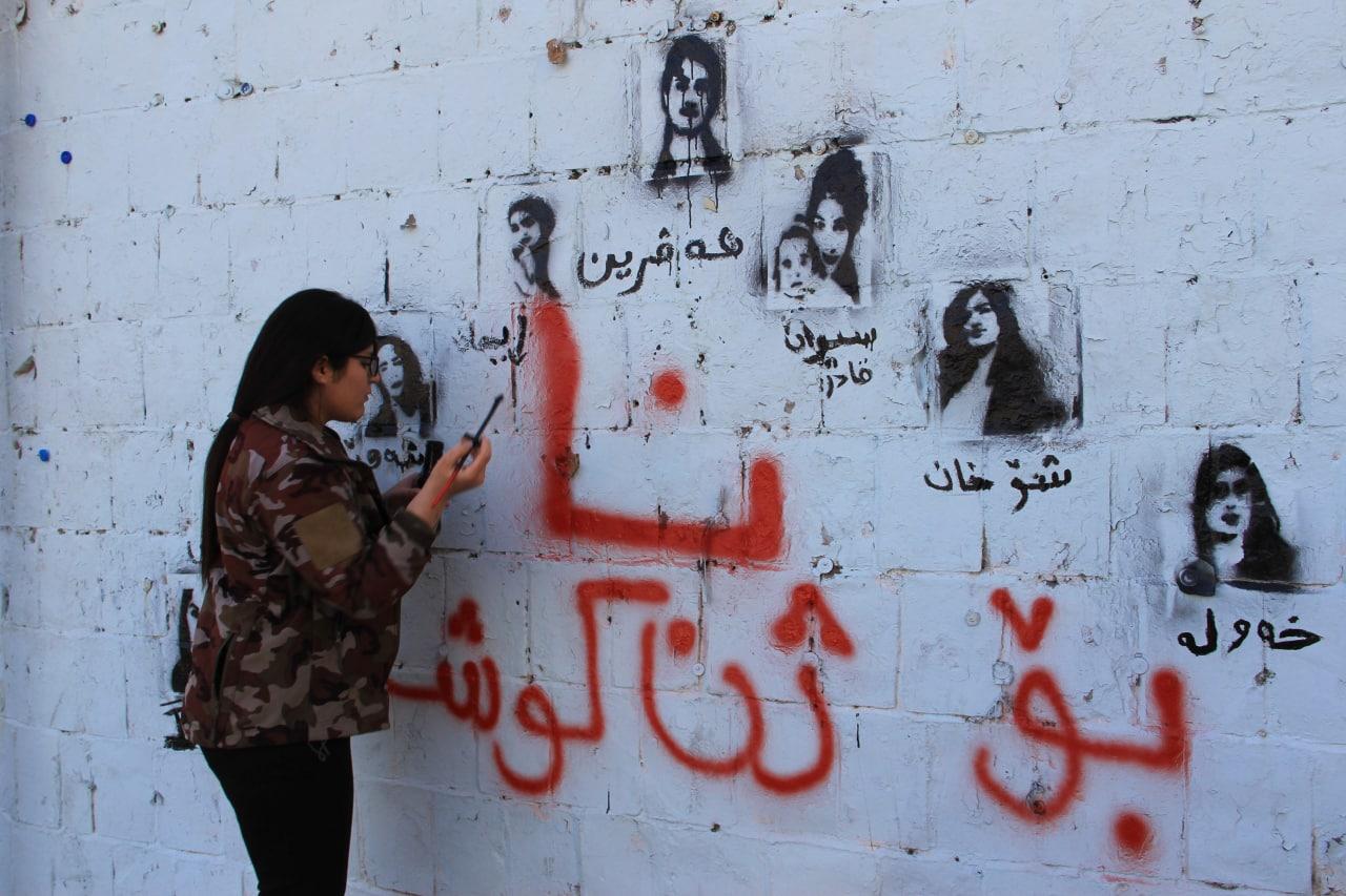 SILÊMANÎ – Jinên Ciwanên Têkoşer li kolanên Silêmaniyê di çarçoveya pêngava “Em Dibêjin NA” de û bi wesileya 25’ê Mijdarê Roja Têkoşîna li dijî Tundiya li Jinê, wêneyên jinên ku li her hêlên Kurdistanê ji aliyê feraseta desthîlatdar a mêr hatine qetilkirin li dîwaran ve boyax kirin.