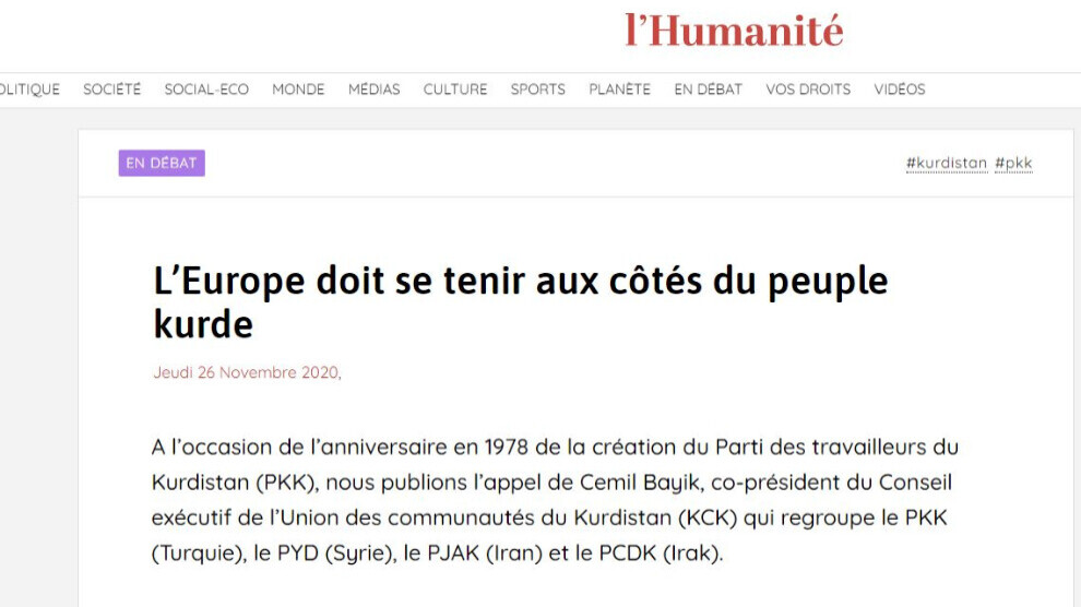 NAVENDA NÛÇEYAN – Gotar ku di dema salvegera 42’an a PKK’ê de hatî weşandin, bi sernavê ”Divê Ewropa li cem Kurdan bisekine” hate belavkirin.