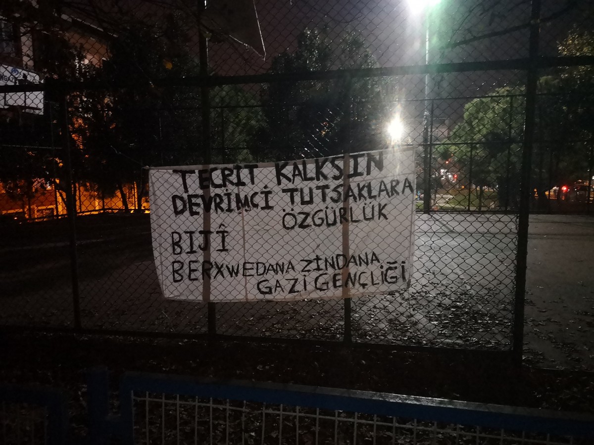 Taxa Gazî yê de ciwana pankarta ku “Bila tecrît rabe. Dîlên Şoreşger re Azadî. Bijî Berxwedana Zîndana” li ser nivisiye daliqandin.
