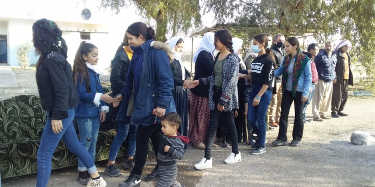 ŞENGAL – Welatiyên Şengalê di çarçoveya çalakiyên dijî peymana Bexda û Hewlêrê ya liser Şengalê de, bi armanca destekdayîna Asayîşa Êzidxanê, di 2’yê Kanûna 2020’an de li pêşiya avahiya Navenda Asayîşa Şengalê kon vedabû.