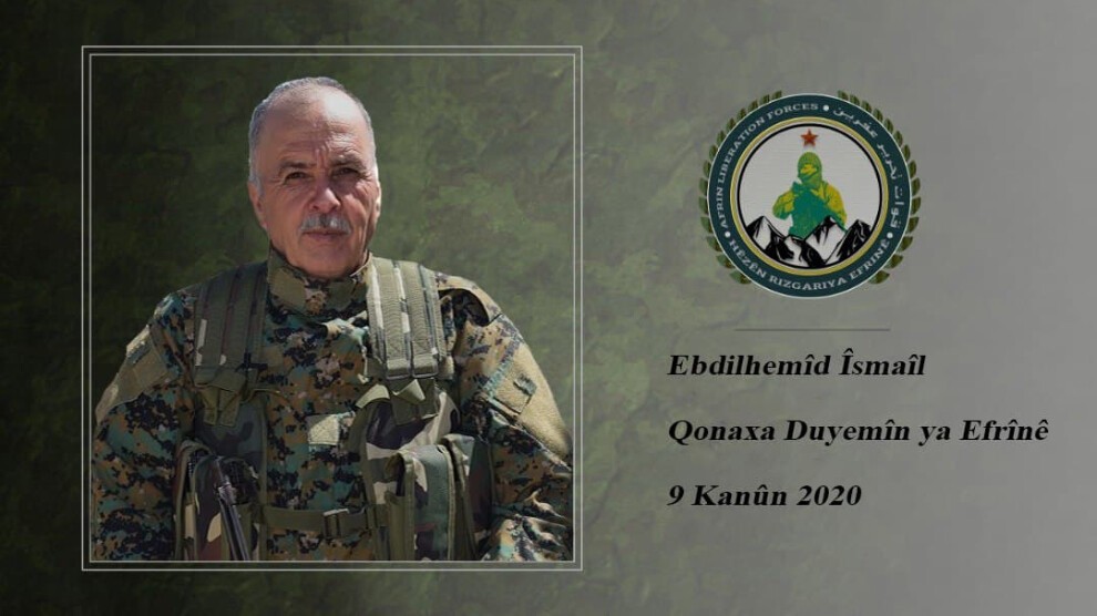 Hevrê Ebdilhemîd Îsmaîl, rexmê temenê xwe yê mezin, li hemberî dagirkeriyê bê helwest nema û di sala 2019’an de tevlî refên me bû. Bi vê sekna xwe yê hêja û birûmet cardin îspat kir, bêyî ku mirov ji bo azadiyê têkoşîn bide, tu wateya jiyanê nîne. Bi vê nêzikatiyê ve bi azwerî û coşeke mezin tevlî kar û xebatan bû. Her tim bi sekna xwe yê kedkar ji bo rêhevalên xwe bû mînak.