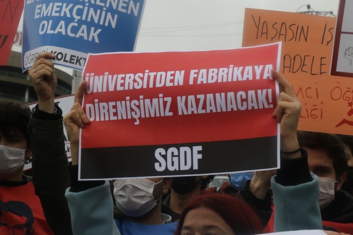 Dûre endamê Kaldiraç Unîversîtelîler Azad Aksoy, diyar kir ku desthilatdarî ji xwendekaran ditirse û wiha axivî: “Em xwendekar wê bi topyekûn li kolanan bin û wê deshilatê ji destê van parazîtan bigirin.”