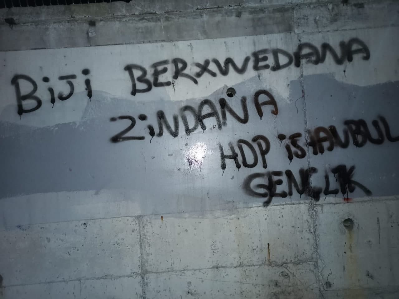 Ji bo balkişandina greva ku 23 roja paş xwe hiştiye li ser dîwara “Deng Bide Zindana” , “Bijî Berxwedana Zîndana” , “Girtiyên siyasî rûmeta me ne” û “Çareserî Îmrali ye” nivisîn.