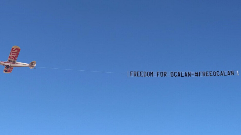 Bi organîzeya DKTF û DKTM’ê balafirekê bi pankarta bi nivîsa “Azadî ji Ocalan re” du saetan li ser herêmên herî qelebalix ên bajêr firiya.