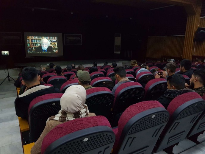Feylesof, dîroknas, zimanzan û ronakbîrê Emerîkayî yê navdar Avram Noam Chomsky bi bernameya “Zoomê” beşdarî Akademiya Çandiniyê ya Zanîngeha Rojava ya bajarê Qamişloyê bû û semîner da. Chomsky, di semînera axivî de, diyar kir ku Rojava di pêvajoyek dijwar re derbas dibe.